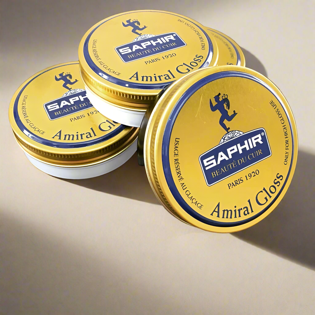 Saphir Amiral Gloss wax polish contains a higher concentration of solid waxes to more easily produce a shiny mirror finish. The composition is based on a mixture of Montana, carnauba and beeswax, as well as other patented waxes kept secret by Safir. Perfectly balanced with a natural turpentine solvent, the gloss for mirror gloss gives quick results that far exceed other conventional polishes.